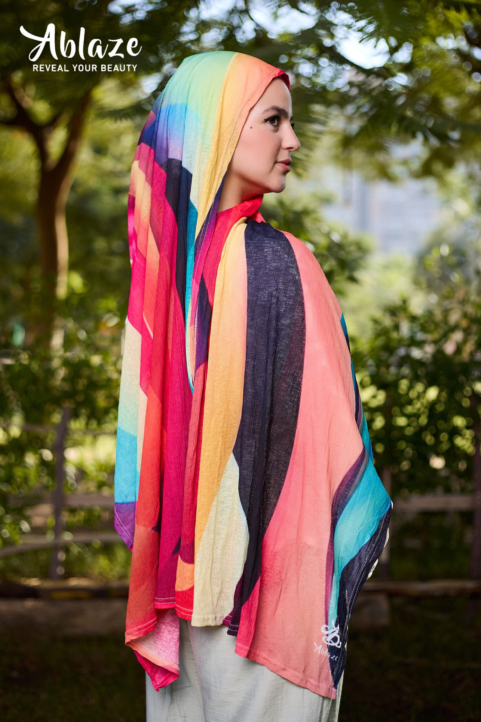 SWIRLS IN ENDLESS FOLDS OF VIBRANT COLOR, FULL OF LIFE AND MOVEMENT. A SCARF THAT CELEBRATES ENERGY AND STYLE.