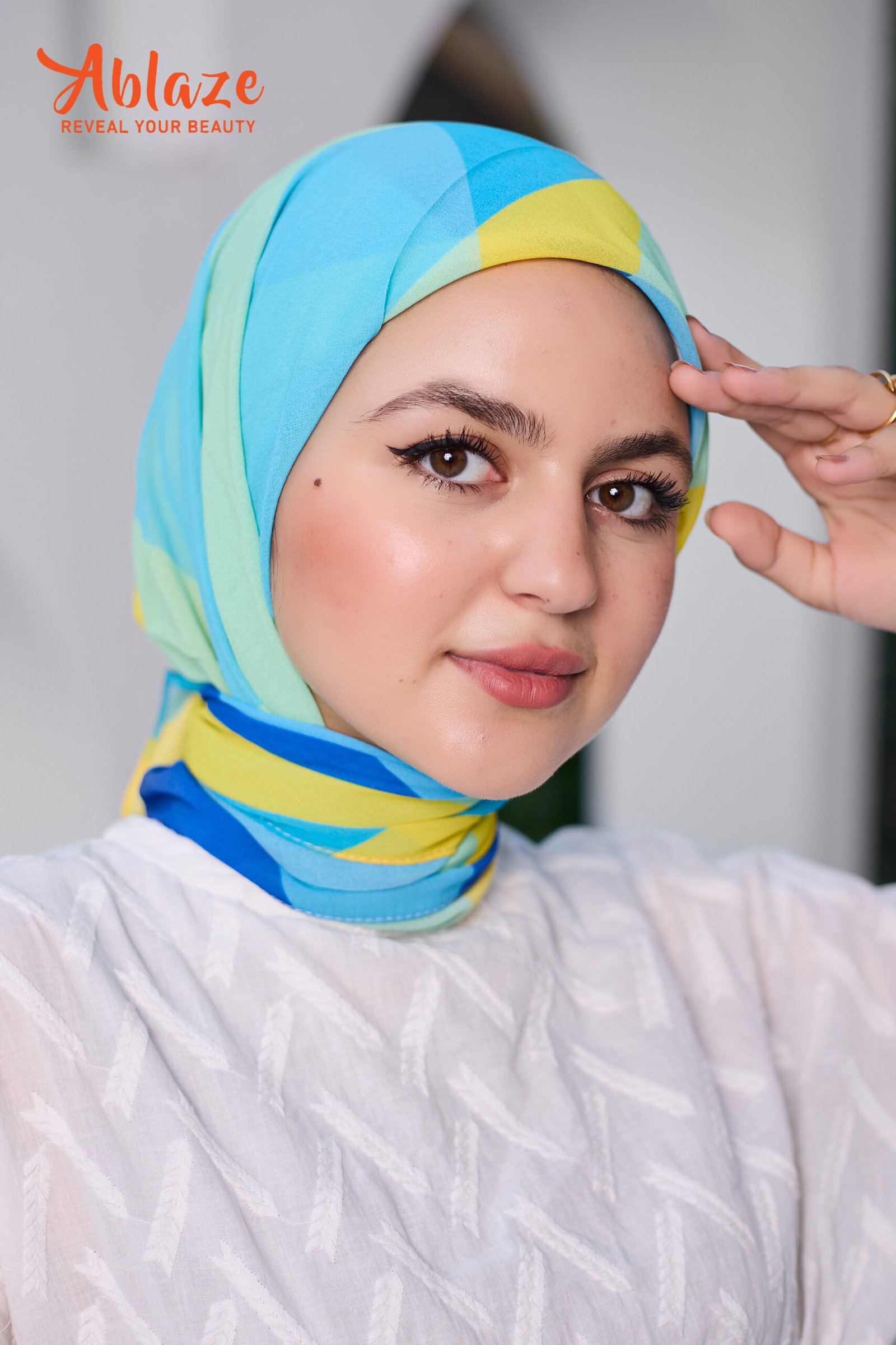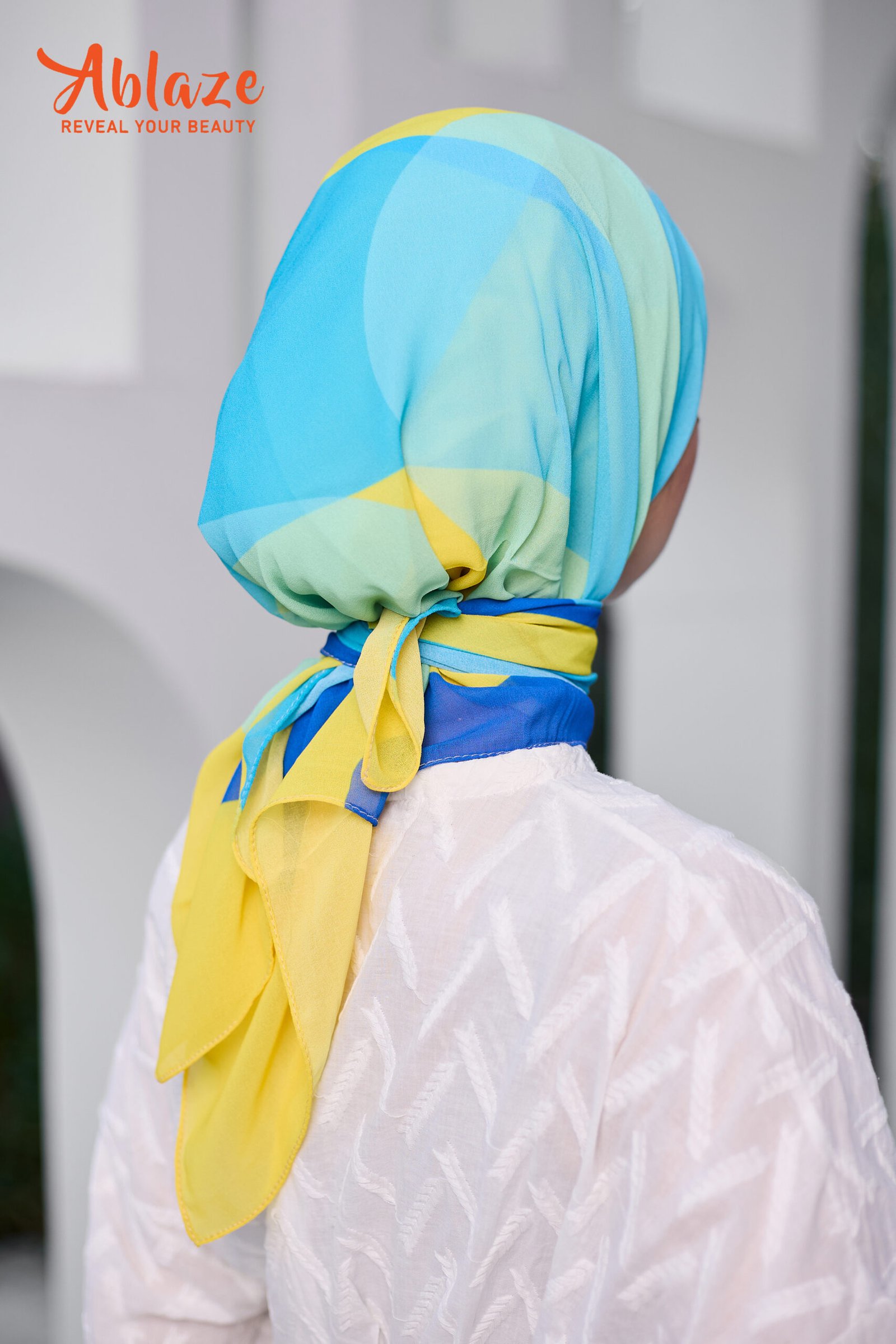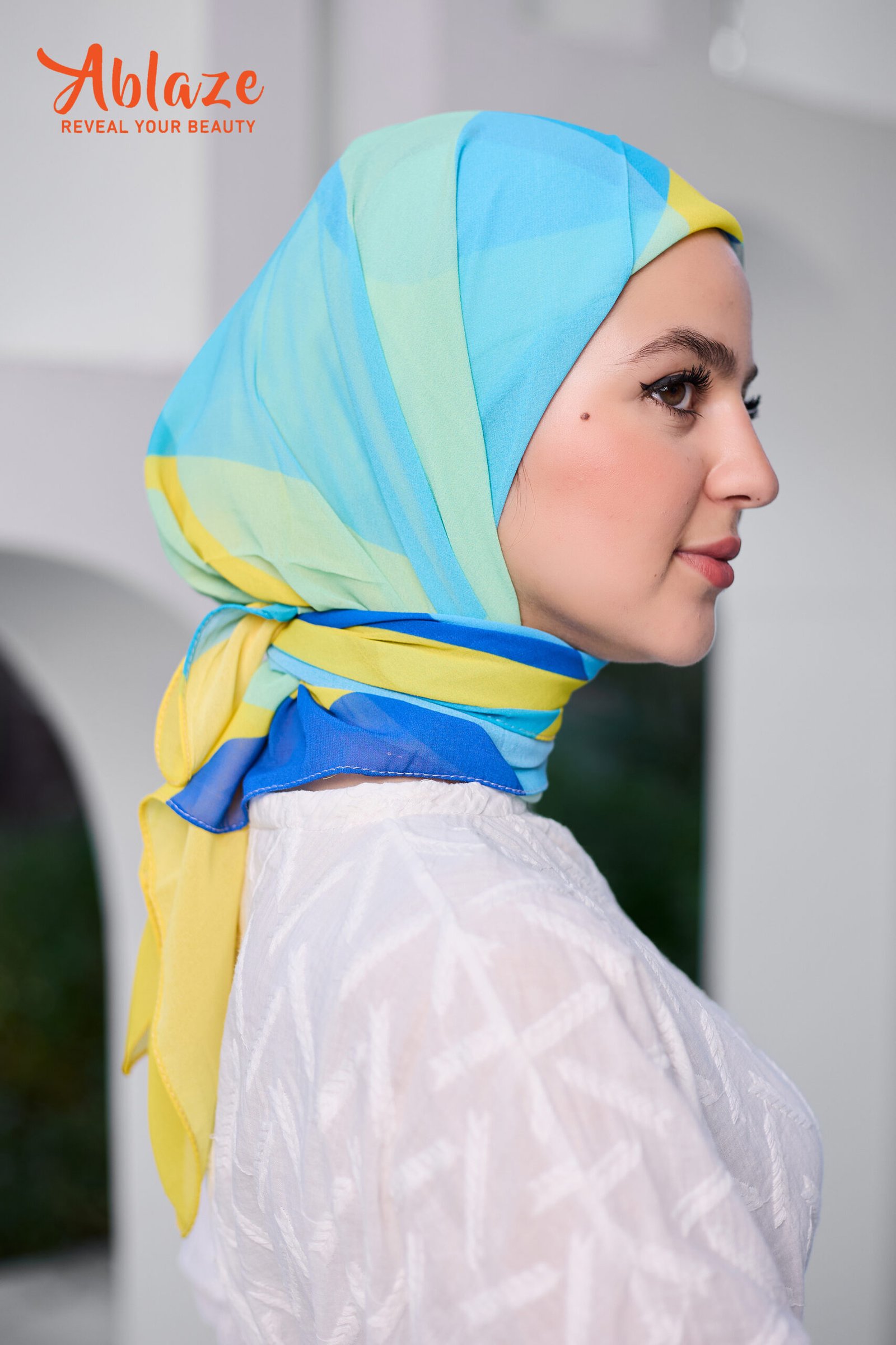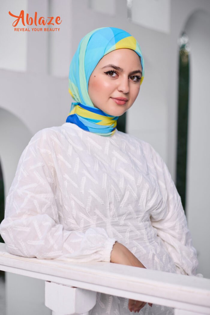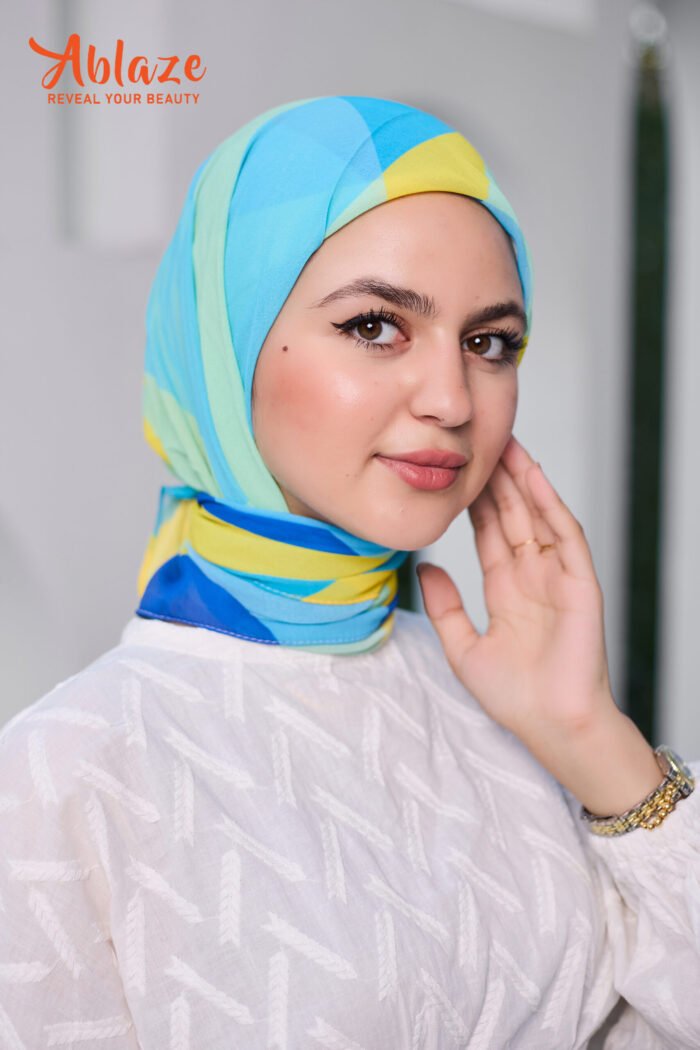 BLENDS FRESH BLUES WITH GOLDEN STROKES, LIKE SUNLIGHT OVER WATER. A REFRESHING SCARF THAT CARRIES OPTIMISM.