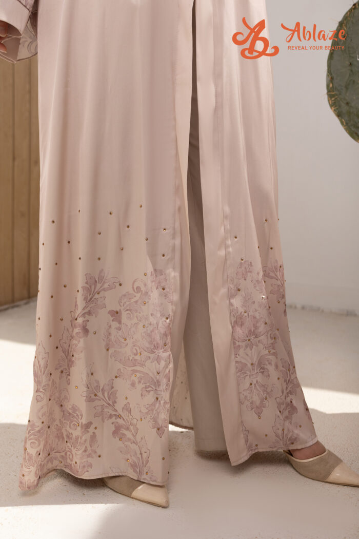 - ✦ الخامة: ساتان فاخر بملمس ناعم ولمعة هادئة