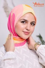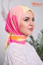 BURSTS WITH PINK AND GOLDEN TONES, LIVELY AND JOYFUL. A SCARF THAT RADIATES WARMTH AND PLAYFUL SOPHISTICATION.