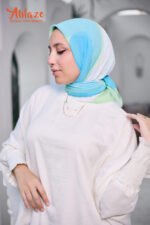 COMBINES COOL BLUES AND VIBRANT GREENS IN SOFT ABSTRACT STROKES. A SCARF THAT FEELS AS REFRESHING AS A BREEZE.