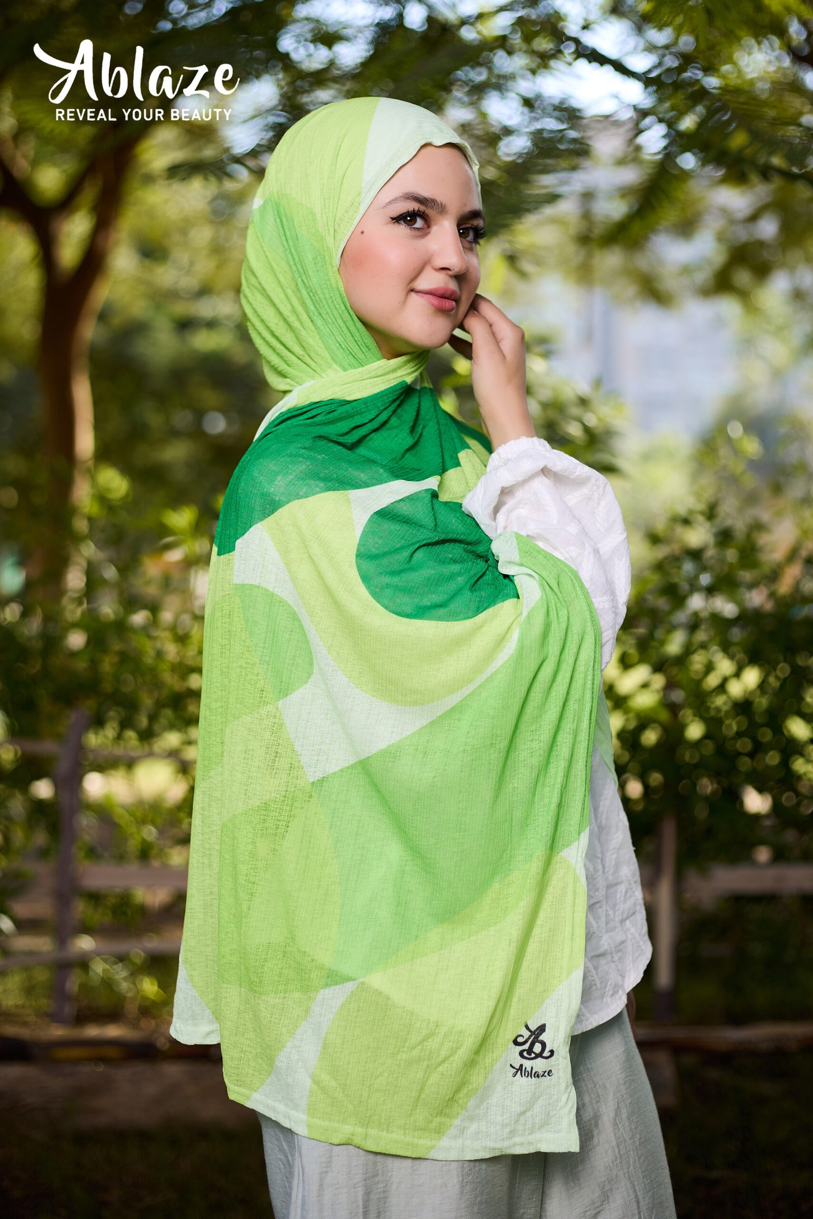 FLOWS IN ORGANIC GREEN SHAPES, LIKE LEAVES CAUGHT IN SUNLIGHT. FRESH AND LIVELY, IT CARRIES THE SOFTNESS OF NATURE IN MOTION.